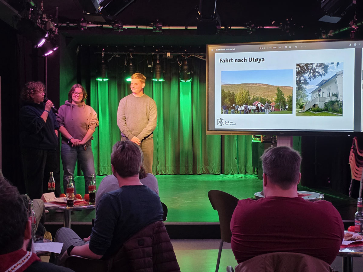 Die von den anwesenden Verbandsmitarbeitenden präsentierten Highlights umfassten ein weites Spektrum von Aktivitäten: Die Jugendfeuerwehr informierte über interessante Alltagsaktivitäten im Rahmen der Jugendarbeit, die Sportjugend berichtete über Aufgabenspektren und Herausforderungen im Rahmen des BFD-Freiwilligendienstes, Unternehmungen der Internationalen Jugendarbeit standen im Zentrum AS Internationales, aus Wendtheide wurden Impressionen zum Lagerleben im Herbst angeboten, die AWO war mit einem Beitrag zu jugendlichen Aktivitäten zur vergangenen Bundestagswahl dabei, die OT Schalom stellte die Kinderchorwoche vor, die in den Herbstferien in der Schalom-Gemeinde Scharnhorst stattfand, die beim Jugendring angesiedelte Servicestelle berichtete über die Jugendkonferenz, Train of Hope stellte exemplarisch drei Aktivitäten des Verbandes in 2025 vor, die Falken berichteten von Gedenkstättenfahrten des Verbandes, die Arbeitsstelle BdE lenkte die Aufmerksamkeit nicht nur auf ein Treffen mit Eva Weyl, sondern berichtete auch von Stolpersteinverlegungen in Dortmund und einer Gedenkstättenfahrt nach Dachau, und abschließend präsentierten die muslimischen Pfadfinder*innen ihr Highlight. So großes Engagement, so viel Aktivität in der Kinder- und Jugendarbeit – dafür hatte der Jugendring-Vorständler Ralf von Gratowski viel Dank und Lob parat und zugleich ein Dankeschön für die ehrenamtlich freiwillig Tätigen mitgebracht: Eine schicke Leinentasche mit aufgedrucktem Stadtlogo, der eine Powerbank und ein Paar wärmende Socken enthielt. Das kleine Geschenk stieß auf großes Interesse.