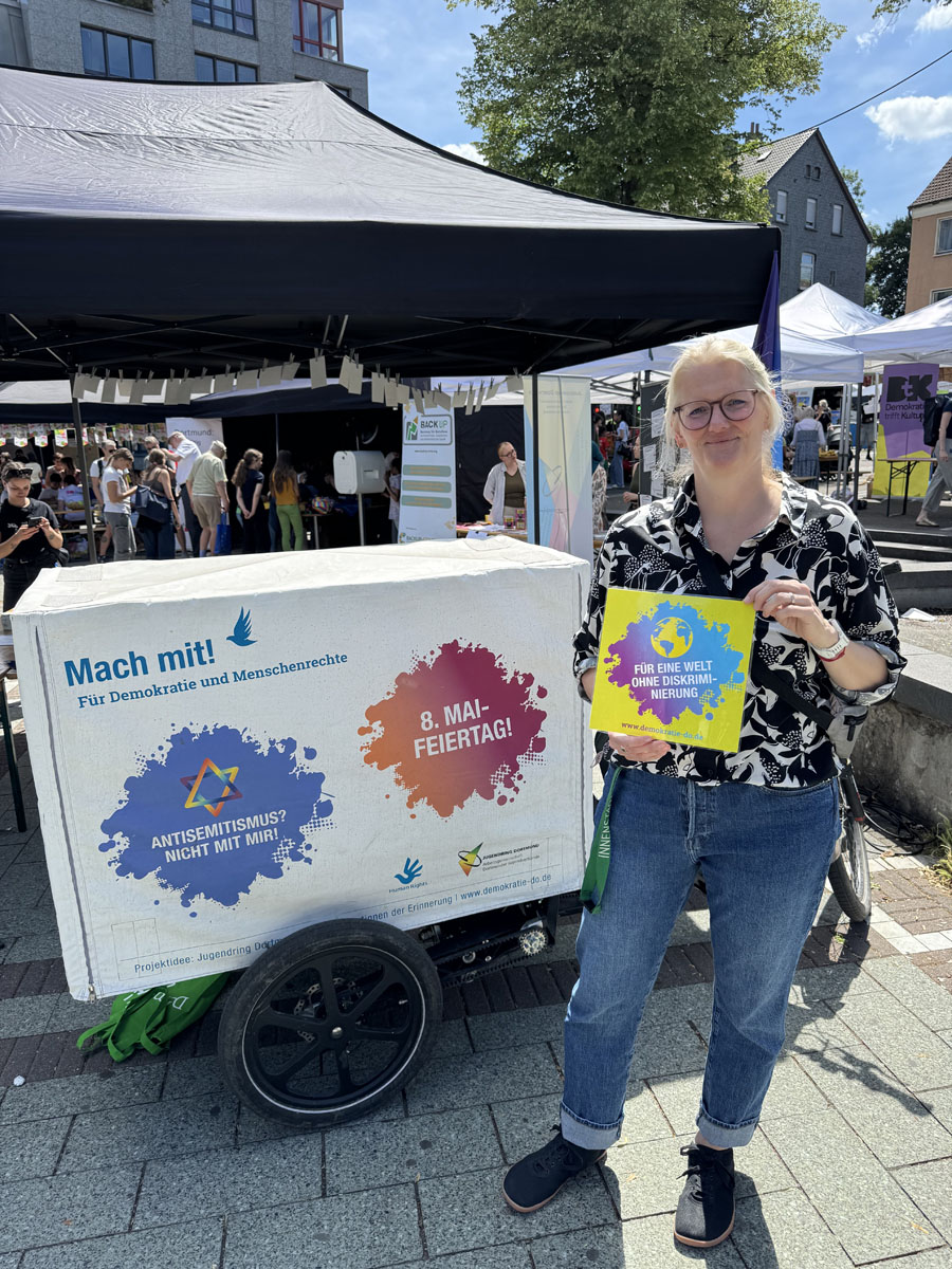 Die JugendBotschaft brachte eine „Meinungwand für Dorstfeld“ mit, bei der insbesondere junge Besucher*innen ihre Botschaften für ihren Stadtteil formulieren konnte und zum Nachzudenken angeregt wurden, wie sie diesen mitgestalten würden. Die Bezirksbürgermeisterin Astrid Cramer war für Gespräche vor Ort und empfing anschließend die Botschaften der jungen Menschen.