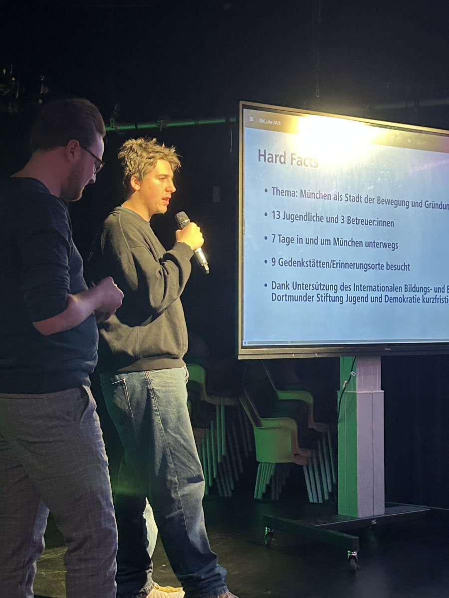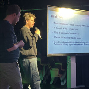 15 junge Menschen machten sich im Oktober auf den Weg nach München. Ziel war es mehr über die Rolle Münchens als „Stadt der Bewegung“ zu erfahren. Verknüpft mit einem Besuch in der Gedenkstätte Dachau, lernten die Jugendlichen mehr über die Gräueltaten der Nationalsozialisten. An authentischen Orten in und um München konnten die Jugendlichen aus der Geschichte lernen. Besonders spannend für die Teilnehmenden war die Auseinandersetzung mit der Widerstandsgruppe Weiße Rose. Die Gedenkstättenfahrt konnte mit Unterstützung der Dortmunder Stiftung Jugend und Demokratie, des Internationalen Bildungs- und Begegnungswerkes und Mitteln aus dem Kinder- und Jugendplan des Bundes realisiert werden.