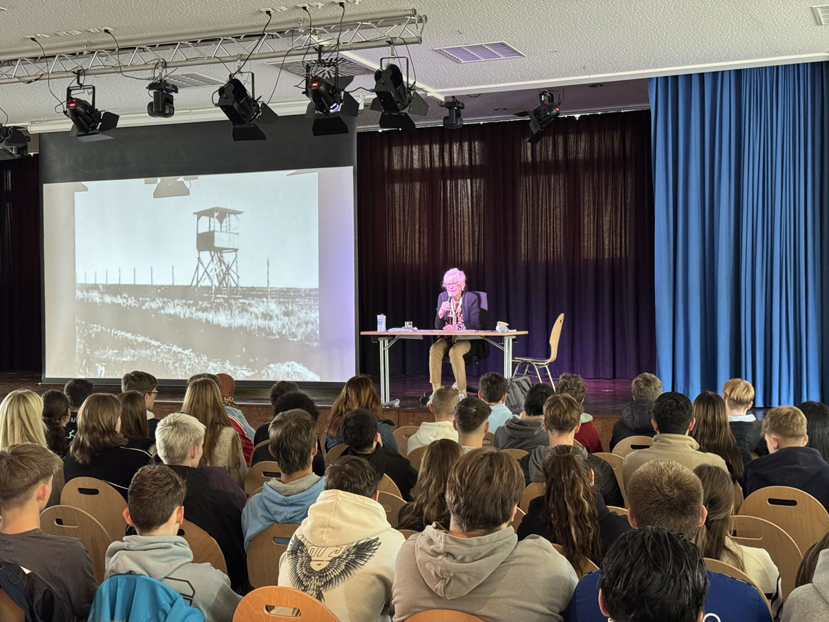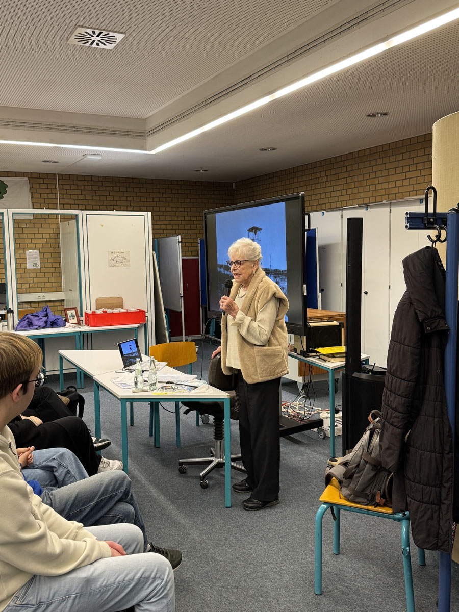 Vom 28.09. bis zum 02.10. durften wir Eva Weyl, Holocaustüberlebende aus den Niederlanden in Dortmund begrüßen. Eva konnten in vier Gesprächen über 650 junge Menschen erreichen. Eva Weyl überlebte gemeinsam mit ihren Eltern den Holocaust im Durchgangslager Westerbork. In ihren Vorträgen und den anschließenden Gesprächen vermittelt Eva ihre Botschaft mit Ruhe und Entschlossenheit.