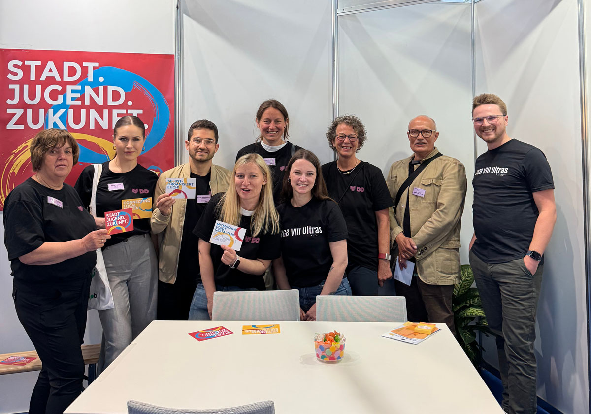 Der Jugendring Dortmund war an der Organisation sowie der Betreuung des Standes der AG Großstadtjugendringe beim Deutschen Kinder- und Jugendhilfetag 2025 in Leipzig involviert. Im Vorfeld wurden gemeinsam Slogans entwickelt, um die Arbeit von Jugendringen vor Ort deutlich zu machen. Diese wurden auf Postkarten und Bannern abgedruckt, um Leute darüber am Stand ins Gespräch zu bringen. Sie wurden außerdem für eine Fotokampagne genutzt, bei der die Besucher*innen sich mit den Statements fotografieren lassen konnten. Außerdem konnten die Mitarbeitenden des Jugendring Dortmund sich vor Ort mit den anderen Jugendringen aber auch mit weiteren Organisationen vernetzen, thematische Vorträge besuchen sowie Impulse für die eigene Arbeit sammeln.