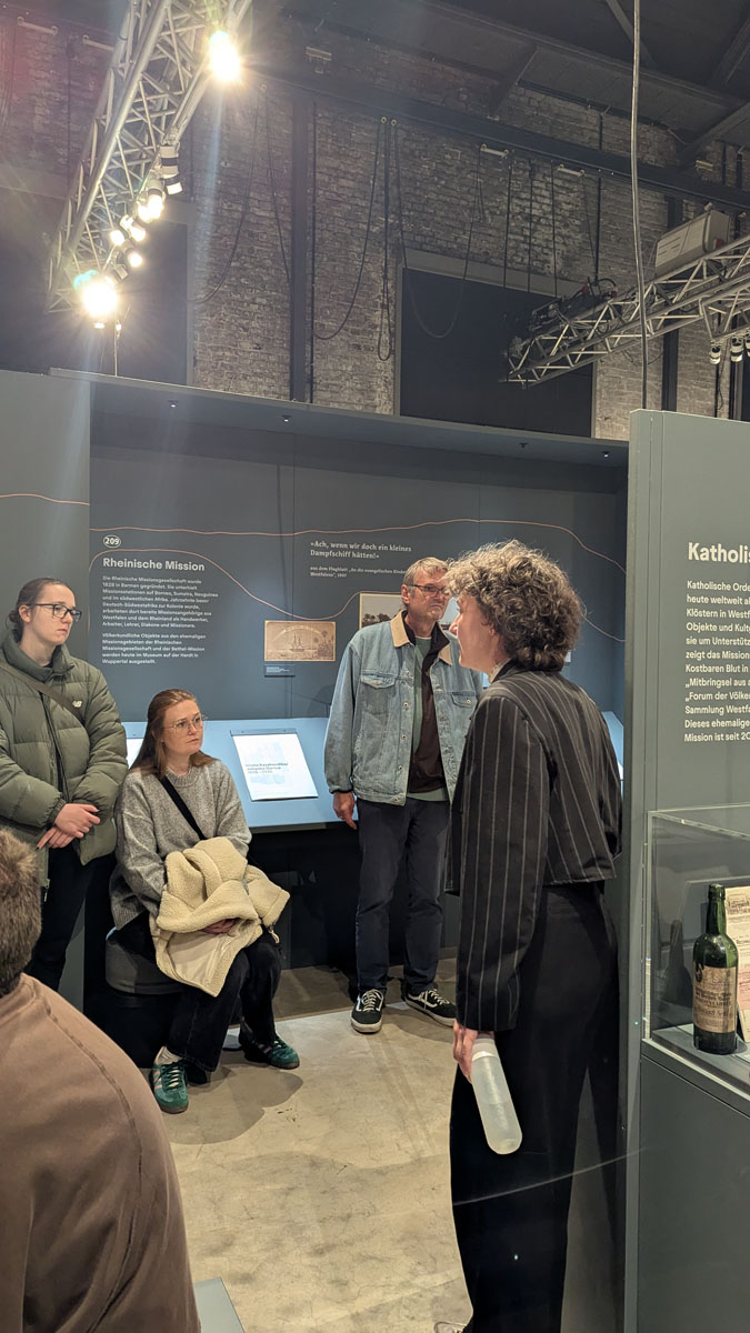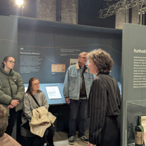 Dem Angebot der Teilnahme an einer Führung durch die anregende Ausstellung folgten 15 Teilnehmende aus Jugendverbänden bzw. Einrichtungen der offenen Arbeit. In einer Feedback-Runde am Ende wurde deutlich: Facetten des Kolonialismus wirken als Ursachen für Diskriminierung und Rassismus weiter. Zahlreiche aktuelle Thematiken bieten Anknüpfungsmöglichkeiten, ihre Folgen sind im Arbeitsalltag von Gruppen und Einrichtungen deutlich spürbar. Daher besteht bei den Teilnehmenden großes Interesse an einer Weiterbefassung mit dem Thema.