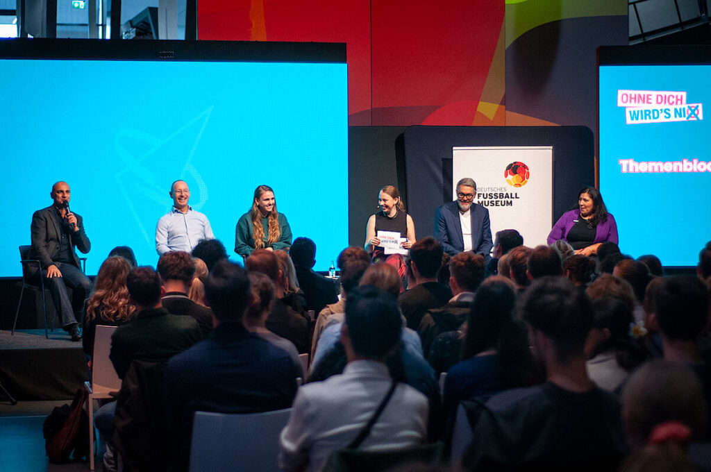 Den Auftakt des Wahljahres bildete im Februar 2025 die Podiumsdiskussion zur vorgezogenen Bundestagswahl im Deutschen Fußballmuseum. Rund 350 Schüler*innen nahmen vor Ort teil.