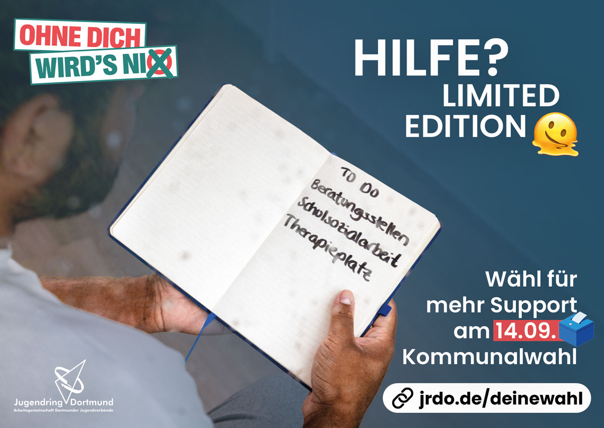 Im Sommer wurden diese Flyer an Einrichtungen der Jugendhilfe, Jugendverbände, aber durch das Redaktionsteam auch an junge Menschen in der Fußgängerzone in der Dortmunder Innenstadt verteilt.