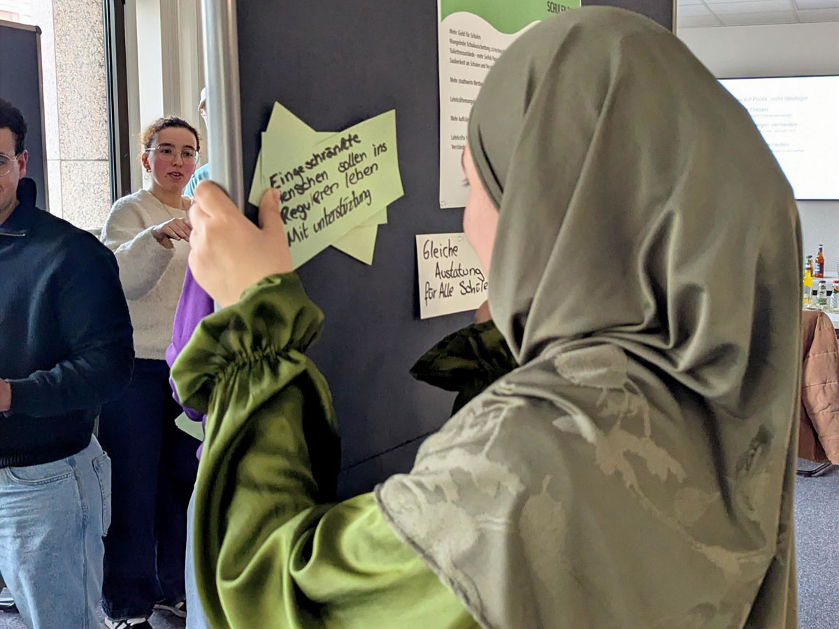 Die Jugendredaktion zum WahlBuddy sammelte bei der Jugendkonferenz Themen und Perspektiven junger Menschen, die wichtig als Orientierung zur Kommunalwahl schienen. Dabei entstanden viele spannende Gespräche und es wurden viele Themen gesammelt wie z.B. Kosten und Sicherheitsmaßnahmen des ÖPNVs, Zustand von Schulgebäuden und Räume für junge Menschen – sowohl draußen als auch drinnen.