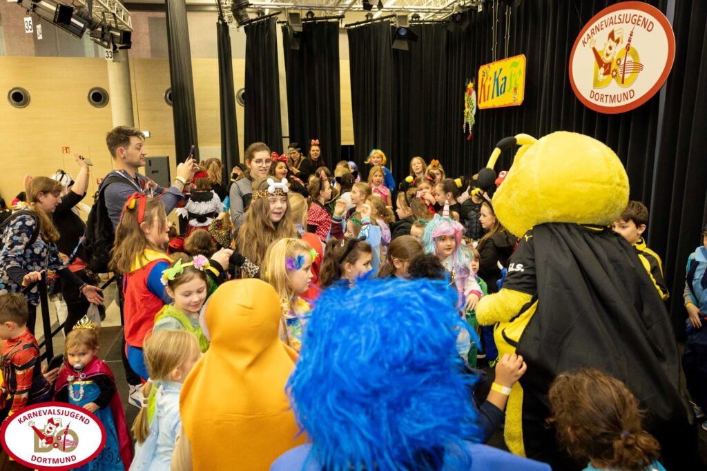 Weiter beteiligte sich die Karnevalsjugend insbesondere vertreten durch das Kinderprinzenpaar an verschiedenen Veranstaltungen z. B. in Seniorenheimen, bei Kinderkarnevalsveranstaltungen und verschiedenen Kinderprinzentreffen, u. A. des Bund-Ruhr-Karneval hier in Dortmund. Hier nochmal ein großer Dank an die Dortmunder Juwelen, die das Kinderprinzentreffen ausgerichtet haben. Bei einigen Veranstaltungen wurde das Kinderprinzenpaar von Dortmunder Programmpunkten begleitet. Am 12.01.2025 nahm das Kinderprinzenpaar auch wieder an der Proklamation des Kölner Kinderdreigestirns im Tanzbrunnen in Köln teil.